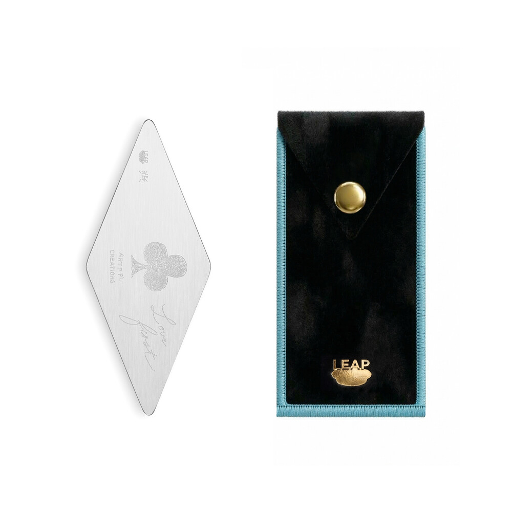 LEAP CARD LUCK 시리즈는 은은하게 빛을 머금은 미러 스틸 위에 아트워크를 담아낸 오브제이자 카드 거울입니다. 각 이미지마다 행운의 메시지가 새겨져 있으며, 핸디하게 제공되는 파우치, 혹은 카드지갑에 넣어 세련되게 휴대할 수 있습니다.