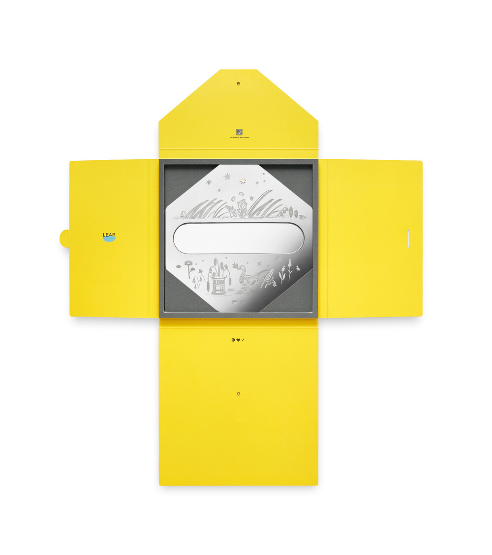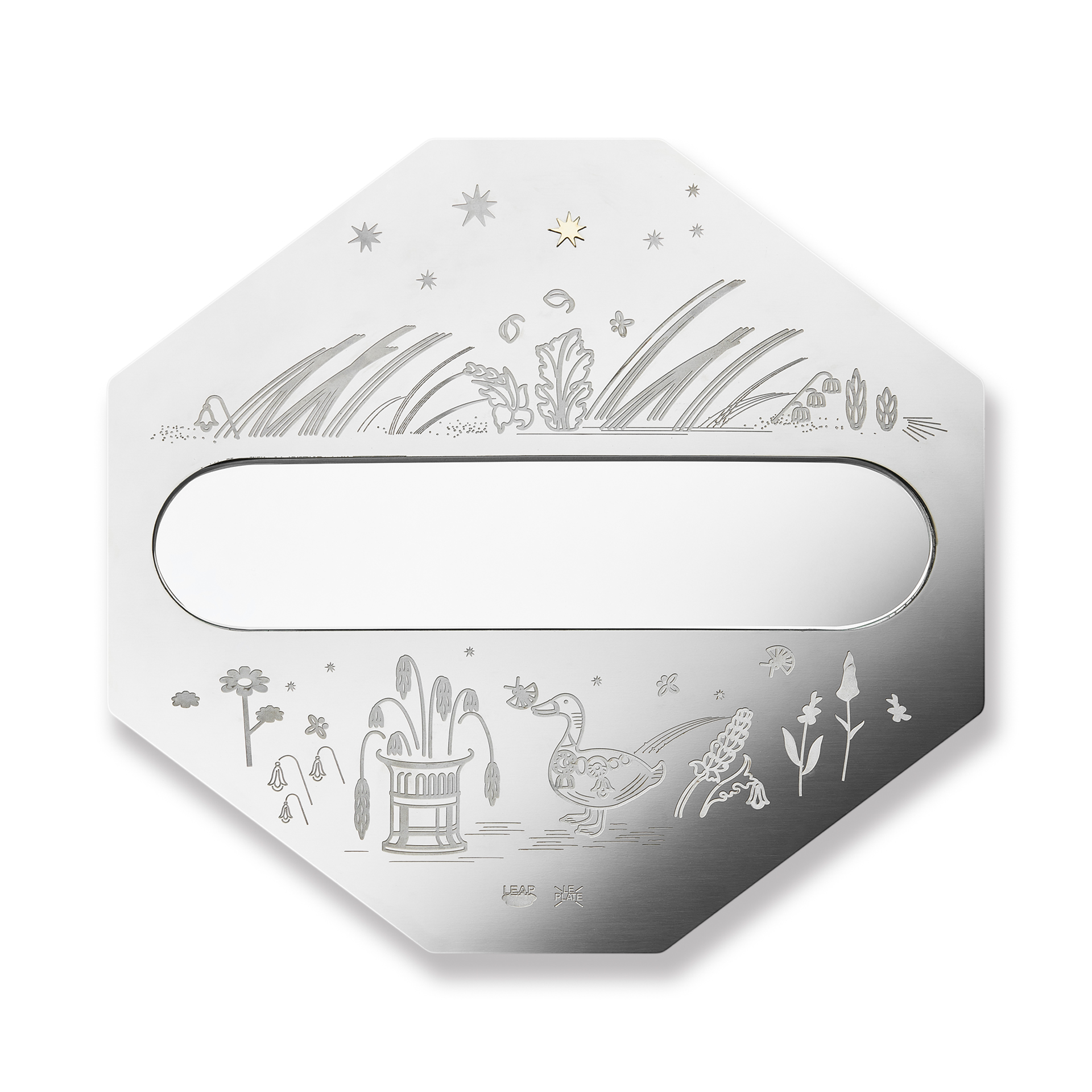 LEAP PLATE DUCK은 은은하게 빛을 머금는 미러 스틸 위에 아트워크를 담아낸 오브제입니다.