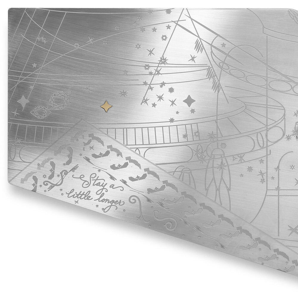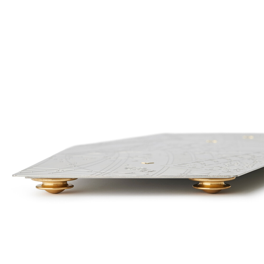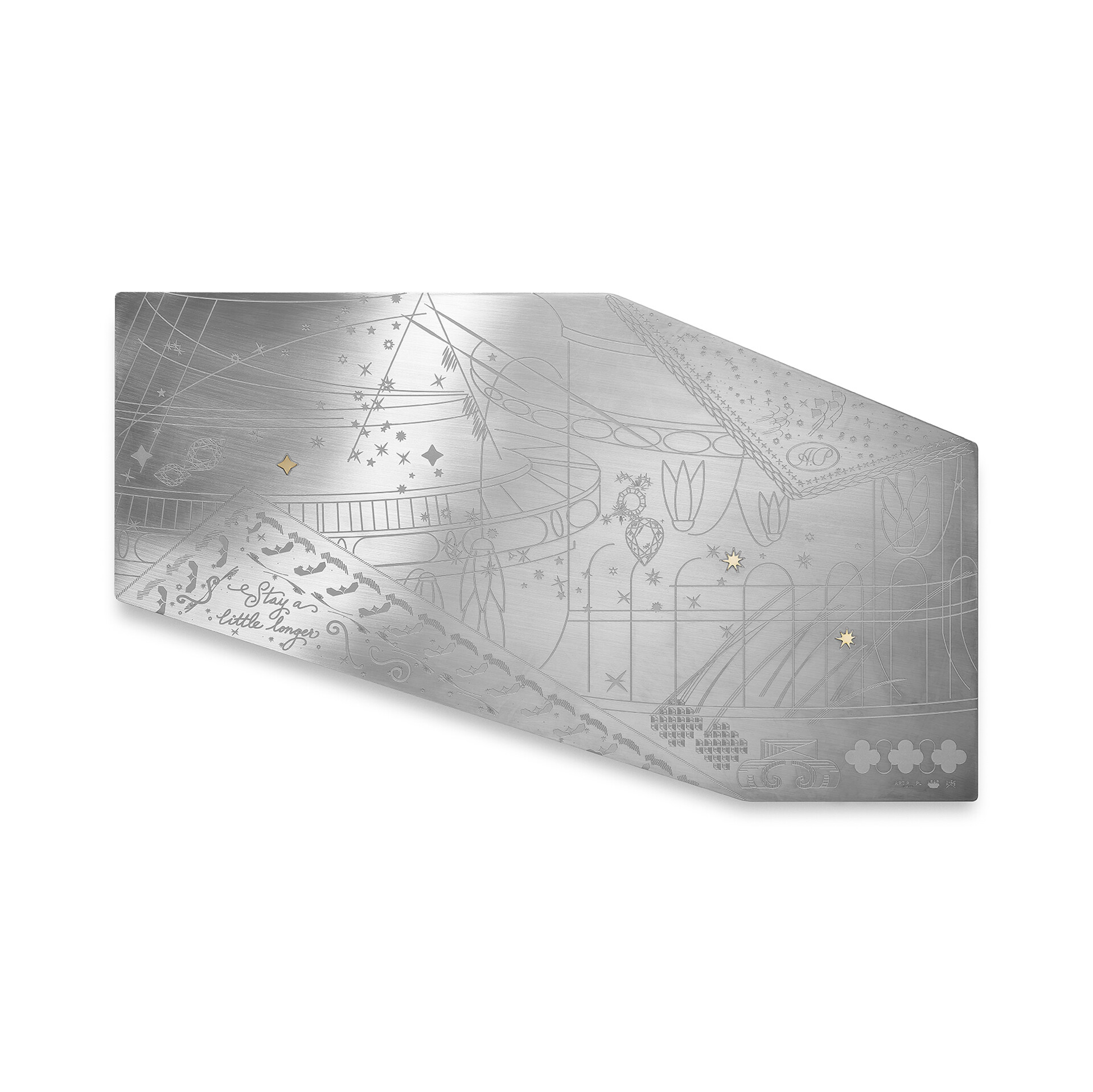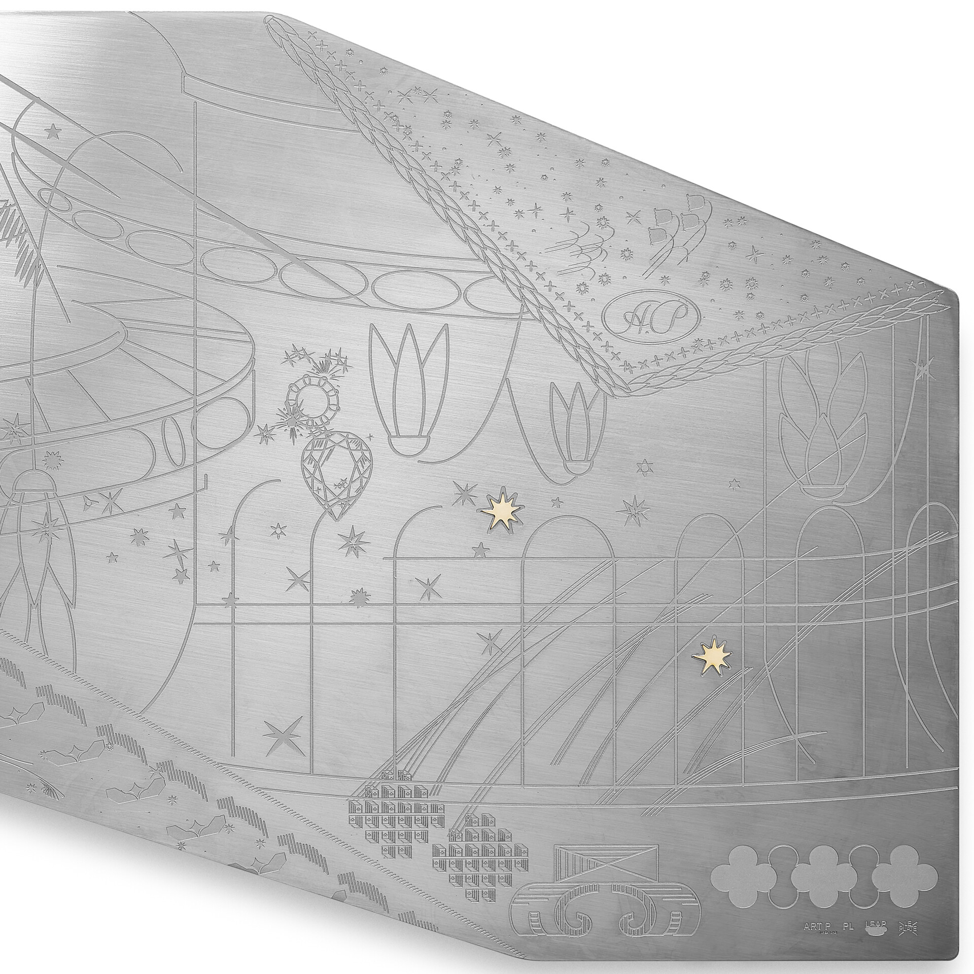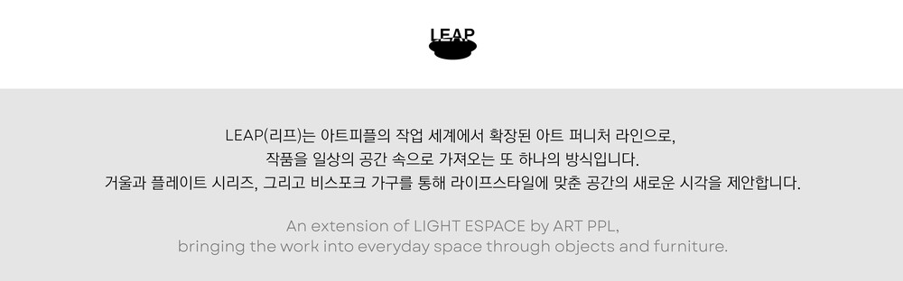 LEAP STAGE는 은은하게 빛을 머금는 미러 스틸 위에 아트워크를 담아낸 오브제입니다.